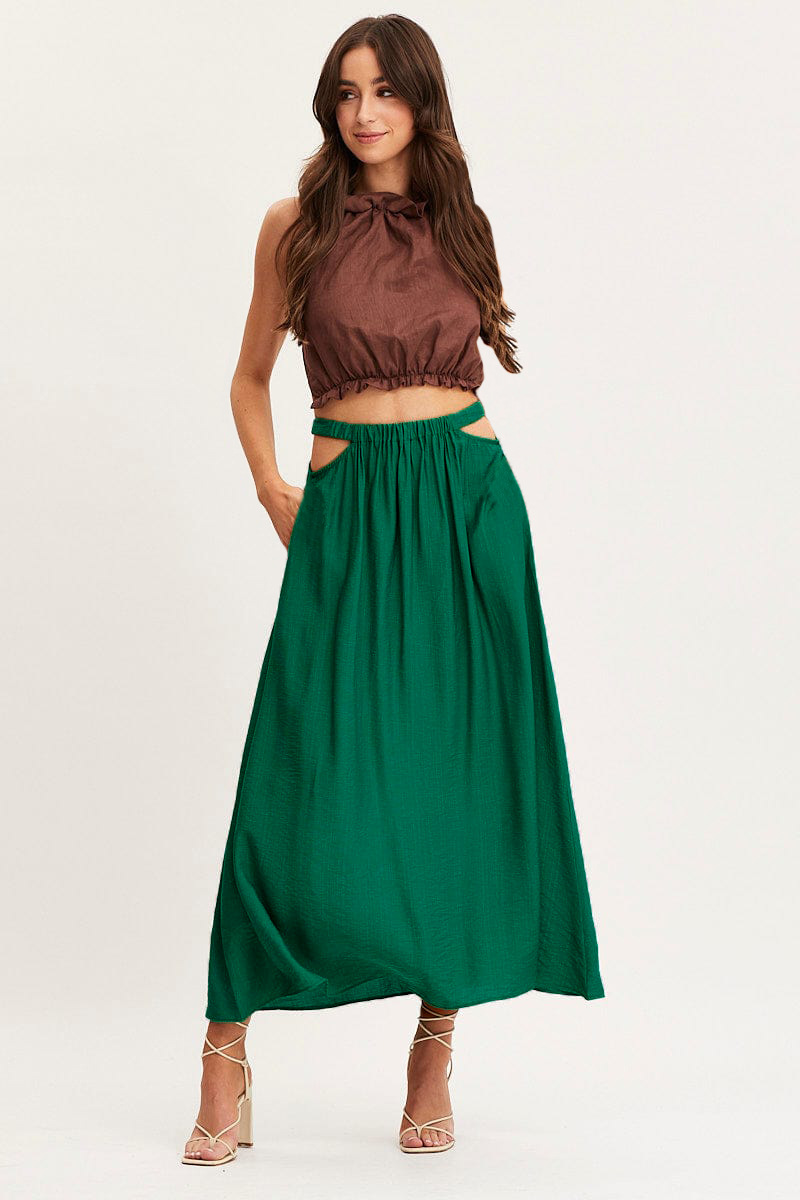 Elise High Waist Hollow Out Cutout Out Solid Long A Line Big Hem Skirt
