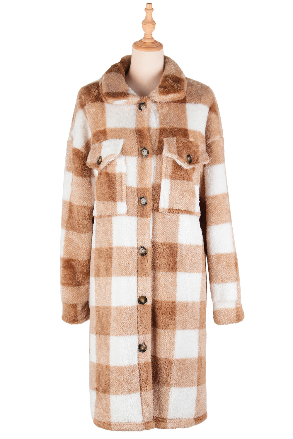 Camila Coat Women Casual Double Pocket Plaid Warm - Vestir en Moda