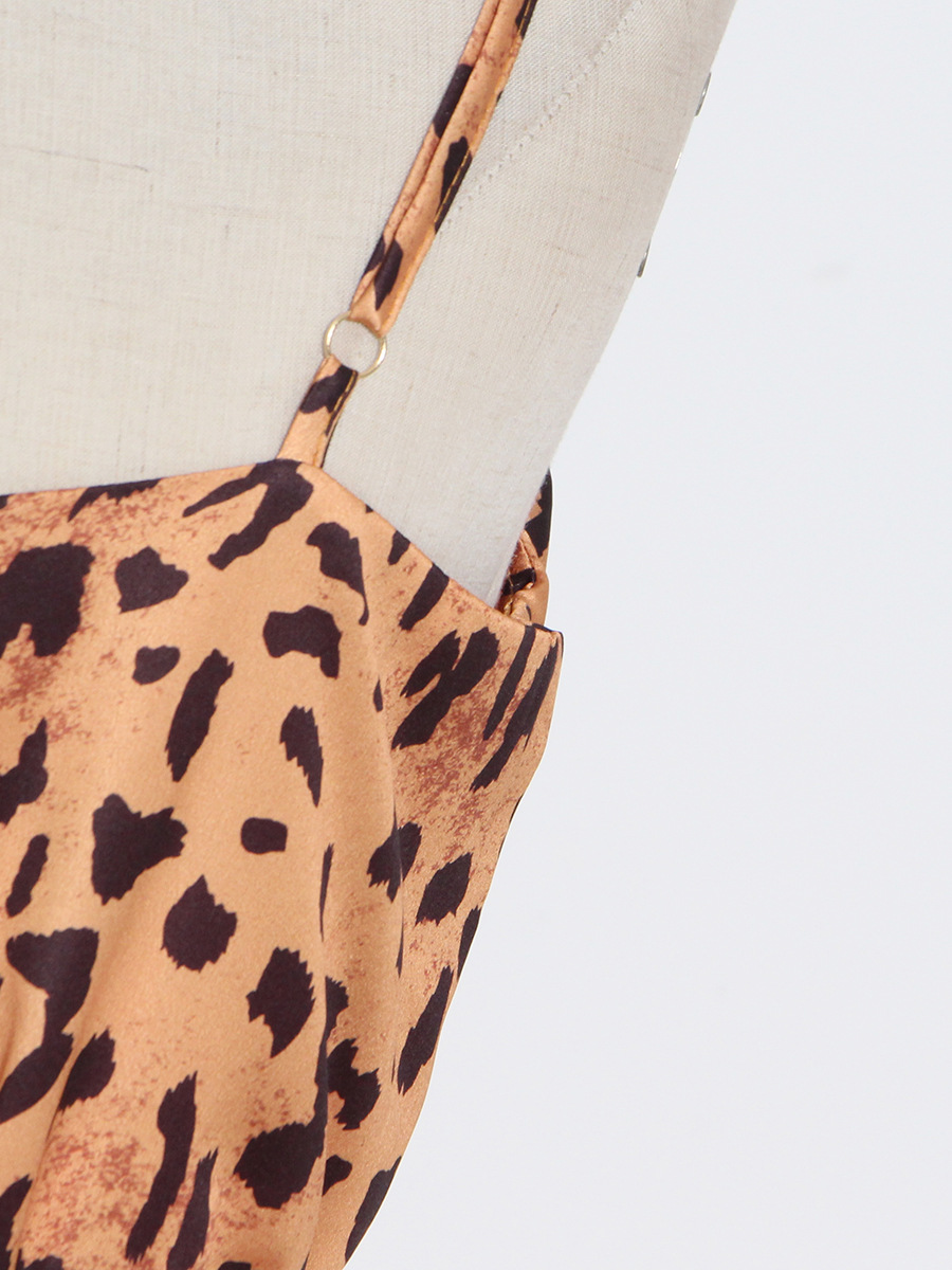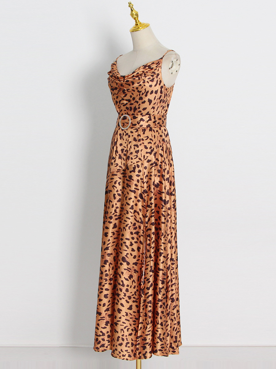 Camelia Pile Collar Mid Waist Long Side High Split Leopard Print Dress
