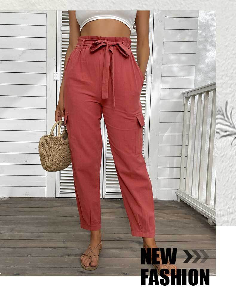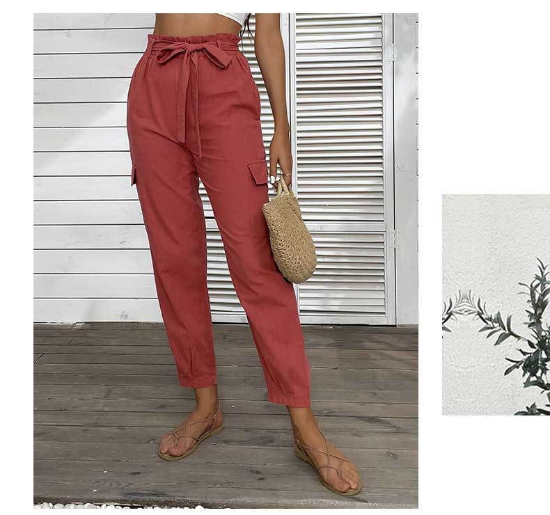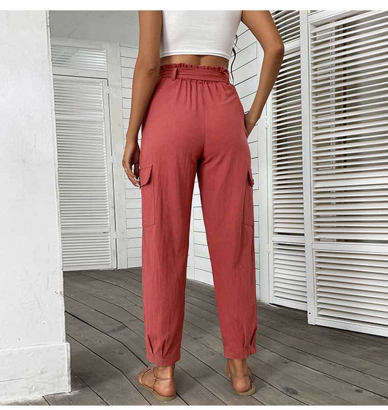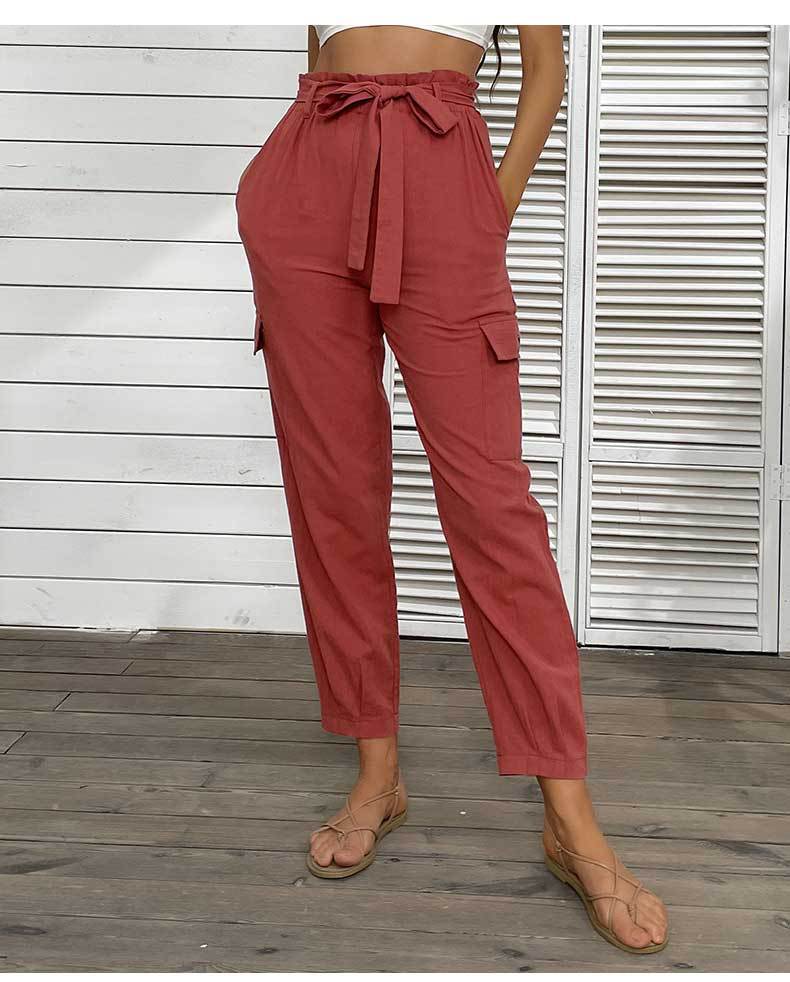 Noelle Solid Color High Waist Casual Straight Red Ankle Length Pants