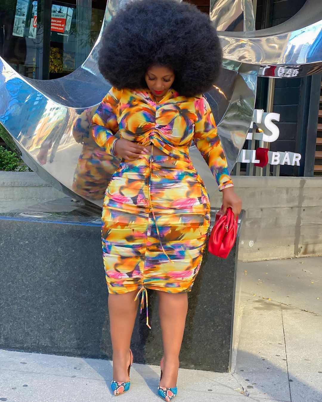 Lia Bag Skirt Set Irregular Asymmetric Pattern Print Personality Draped Dress - Vestir en Moda