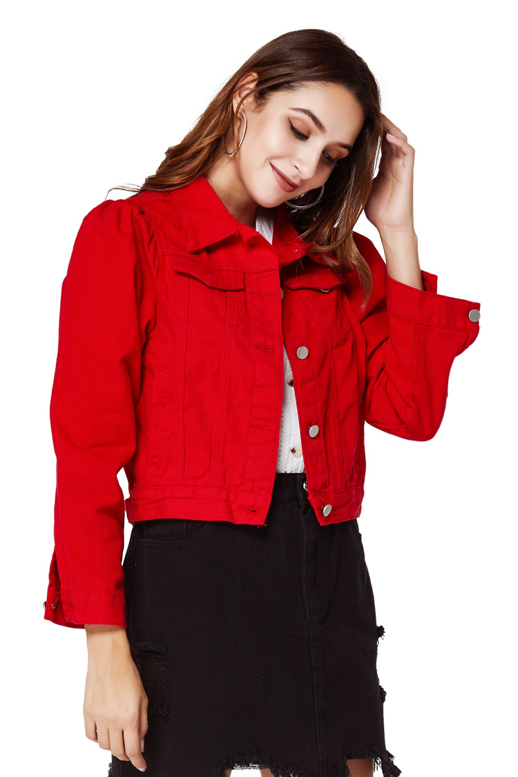 Alex Women Casual Red Jean High Quality Cotton Jacket