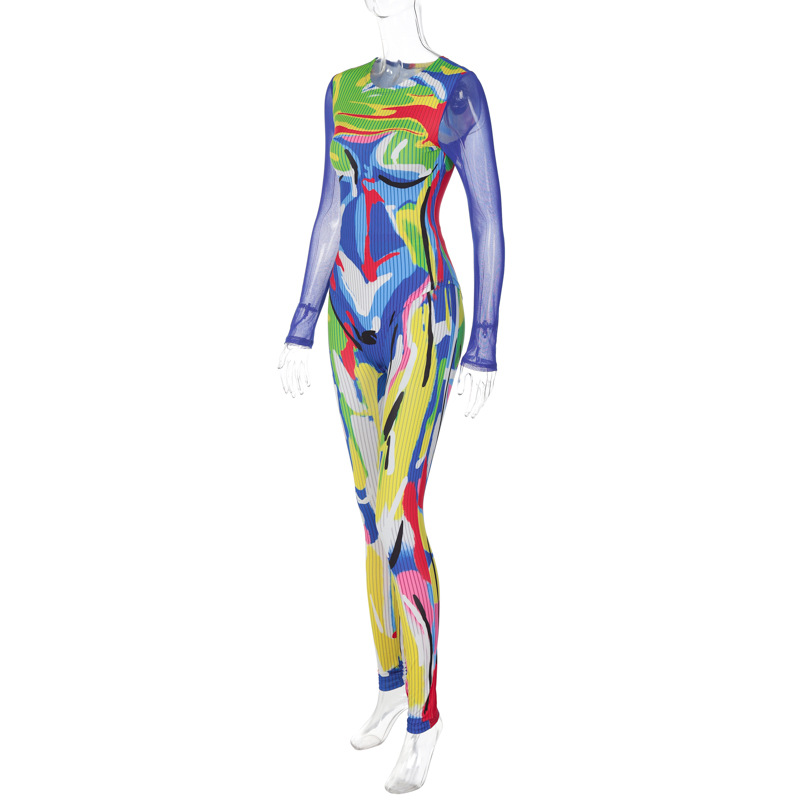 Rylee Printed Stitching Long Sleeve Slim Fit Skinny Two Piece Set - Vestir en Moda
