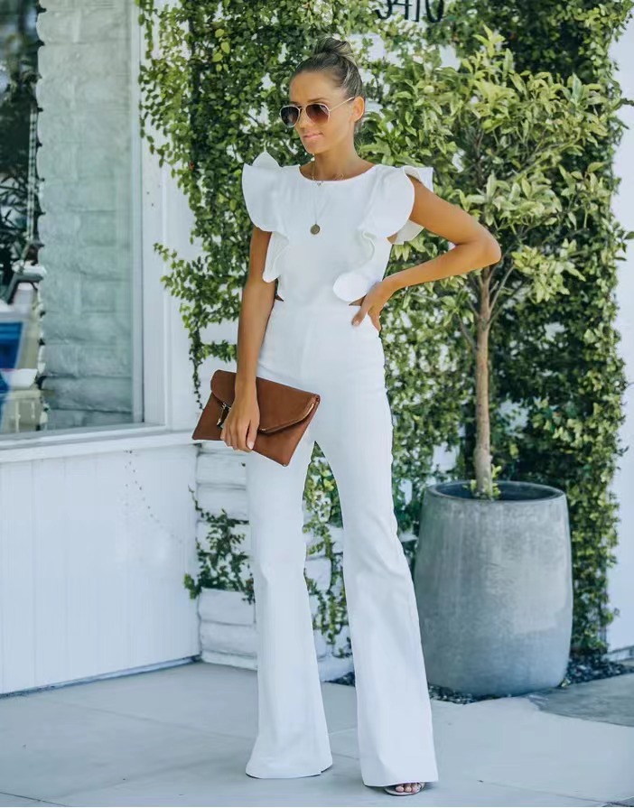 Azahara Ruffles Backless Straight Jumpsuits Spring Summer