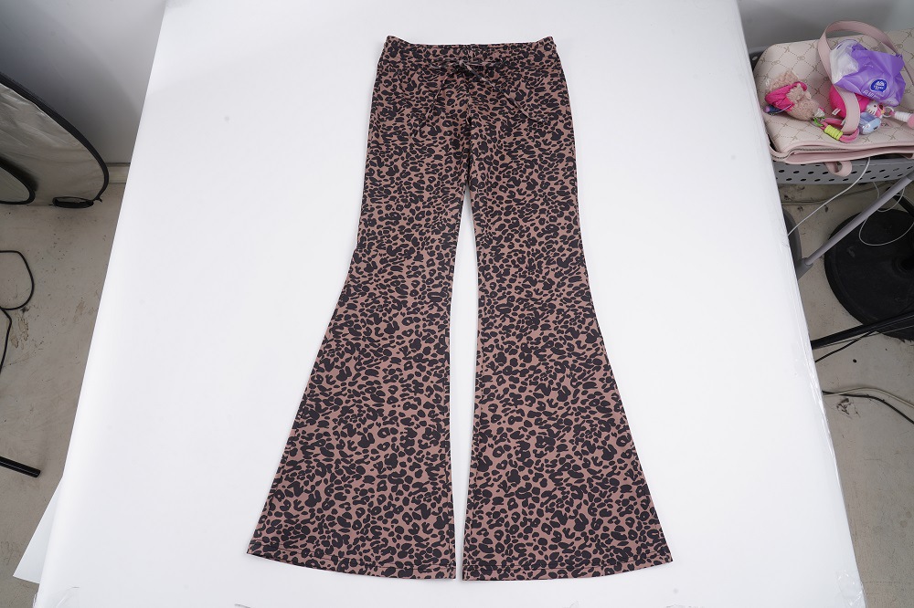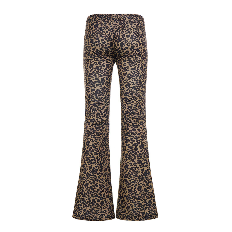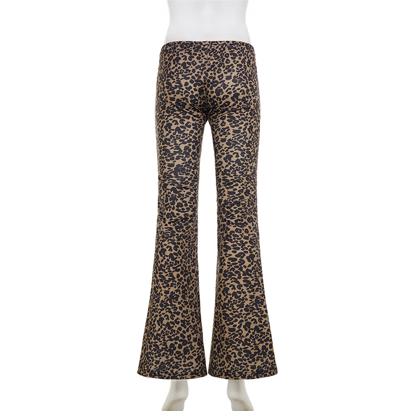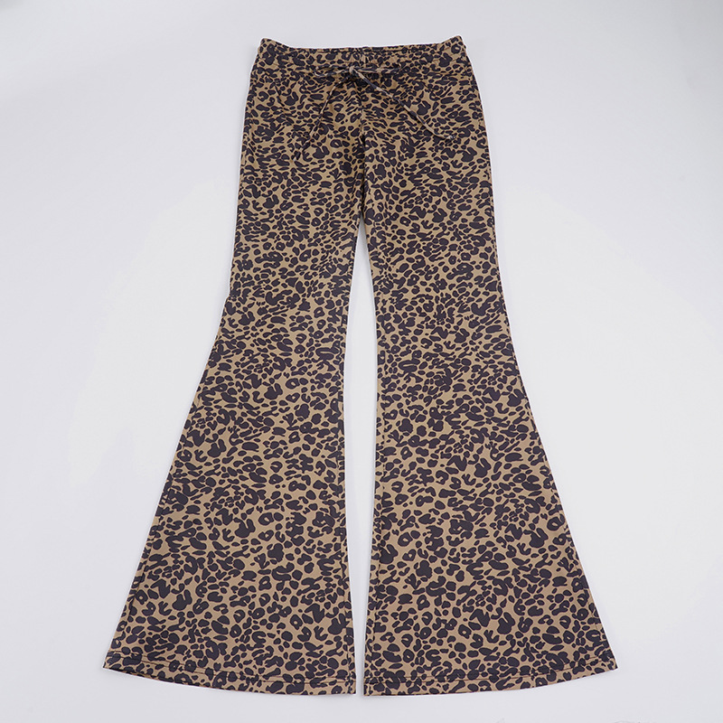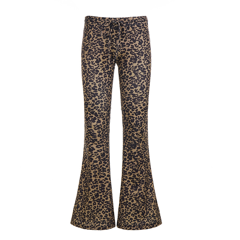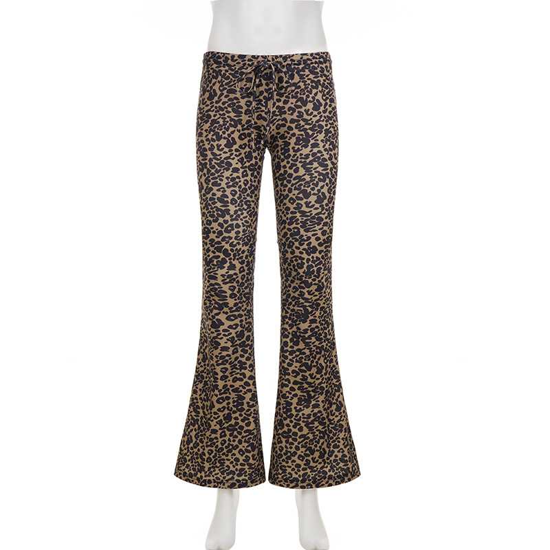 Sexy Leopard Print Drawstring Casual Pants Women Street Trendy Thin Looking Bootcut Pants